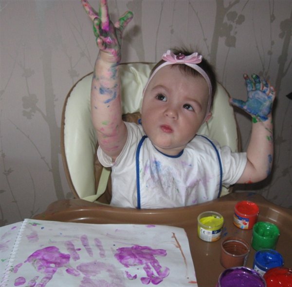 Любим очень рисовать, в краски пальчиком макать.Рисовали, рисовали, даже отпечатки сняли!
